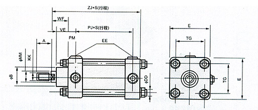工作壓力范圍:32~100:0.15~1MPa 、125~320:0.1~1MPa